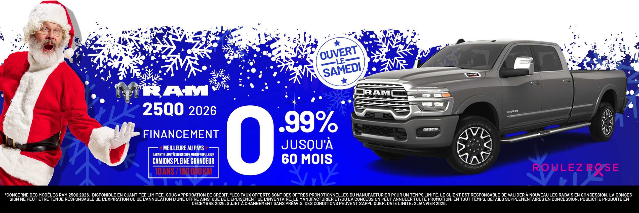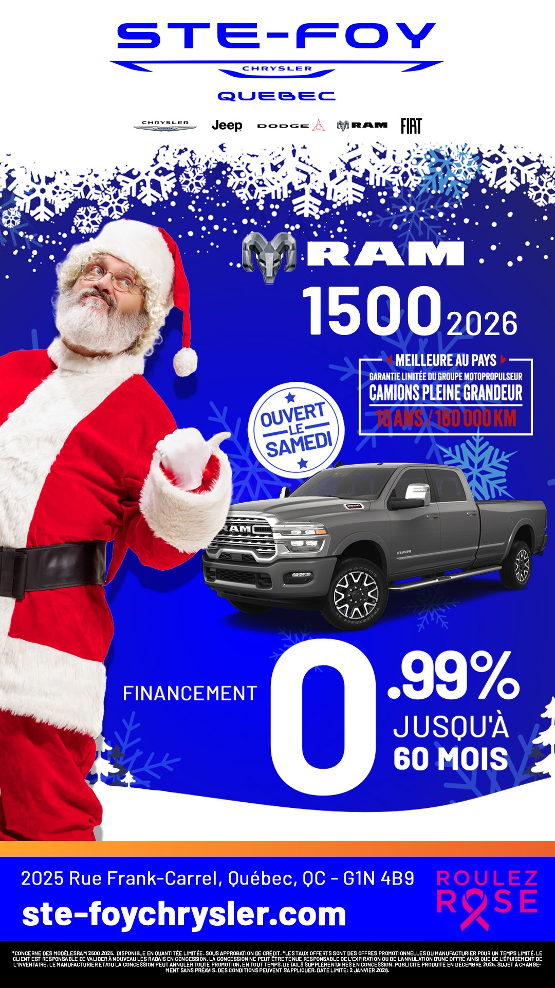 La gamme RAM répond aux besoins des plus exigeants avec des véhicules robustes et fiables. Que ce soit pour le travail ou les loisirs, les véhicules RAM chez Ste-Foy Chrysler sont prêts à relever tous les défis.