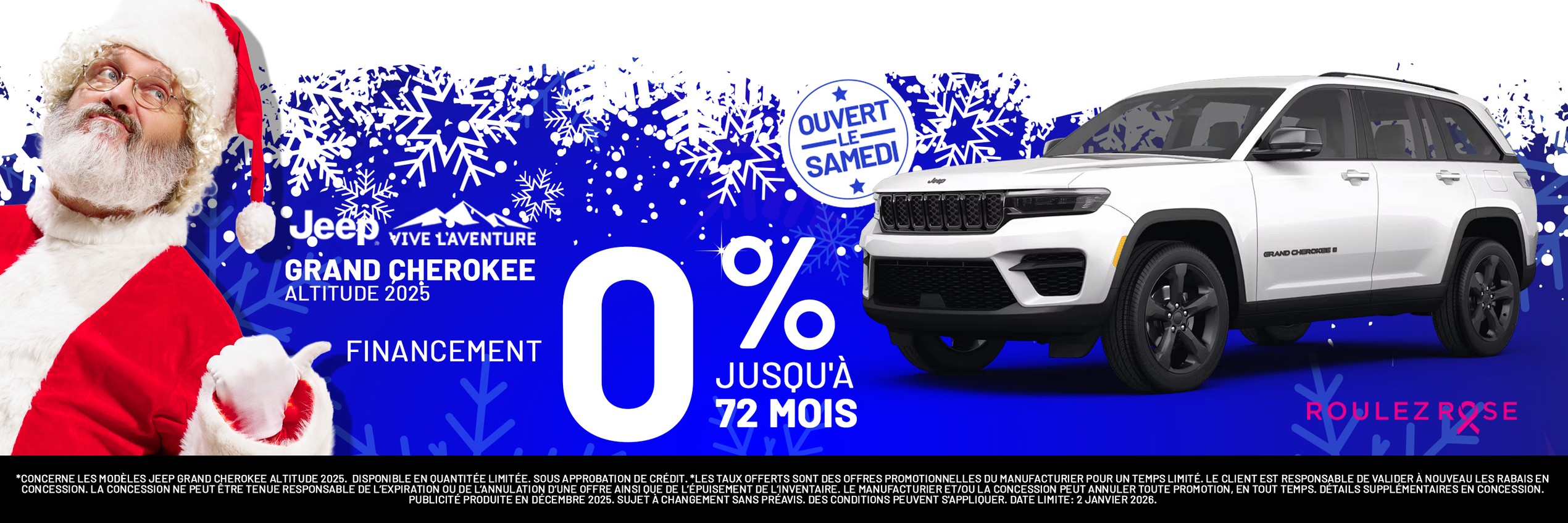 C'est pourquoi notre inventaire est soigneusement sélectionné pour vous offrir les modèles Chrysler, Jeep, RAM, Dodge et Fiat les plus fiables, élégants et performants du marché. Que vous recherchiez une berline raffinée, un VUS spacieux ou un véhicule compact agile, vous trouverez chez nous la crème de la crème de Chrysler, Jeep, RAM, Dodge et Fiat. Nos véhicules Chrysler, Jeep, RAM, Dodge et Fiat se distinguent par leur design élégant, leurs caractéristiques innovantes et leurs performances exceptionnelles.