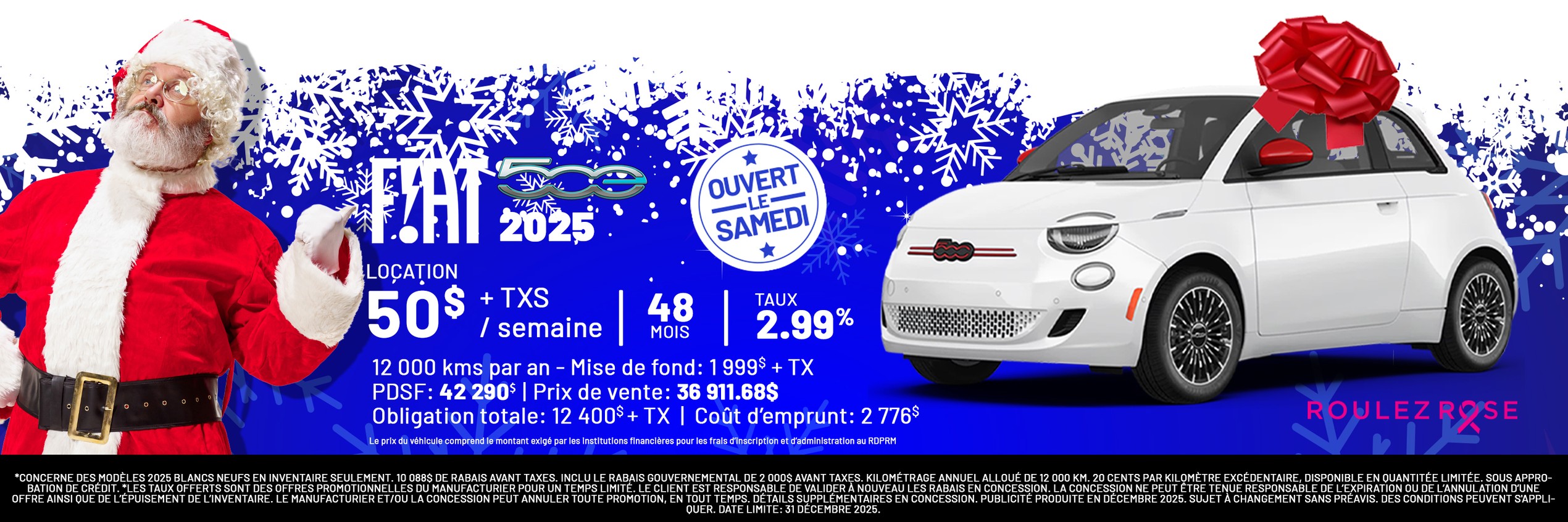 Fiat est la marque par excellence pour ceux qui recherchent un mélange unique de style européen et d'efficacité. Parfaits pour la vie urbaine à Québec, nos modèles Fiat allient esthétique et fonctionnalité.
