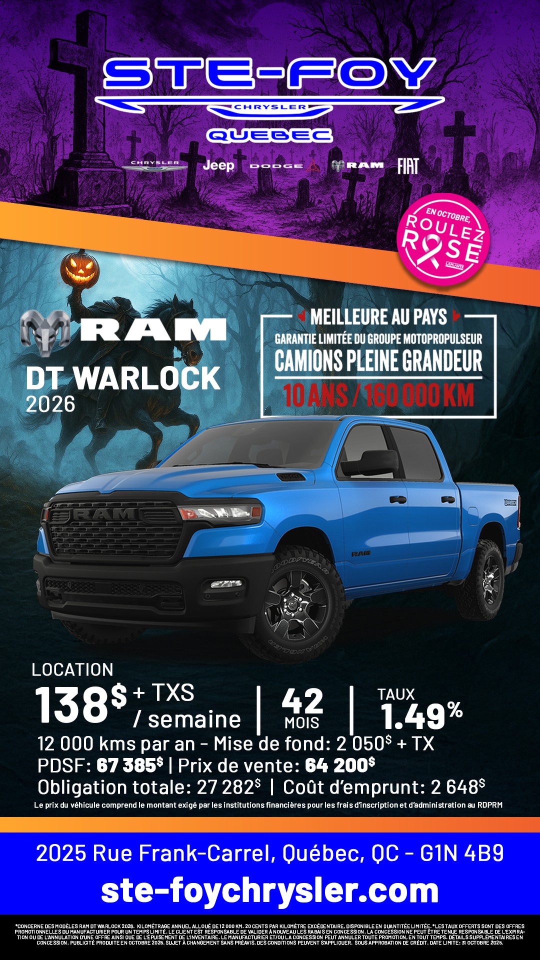 Visit us today at Ste-Foy Chrysler to explore our ongoing promotions and test drive these incredible Chrysler, Jeep, RAM, Dodge and Fiat vehicles. Don't miss out on the chance to drive with style, performance, and reliability, all at advantageous prices. With us, you're sure to find the best deal on your next Chrysler, Jeep, RAM, Dodge and Fiat vehicle. Visit Ste-Foy Chrysler and save big on your automotive purchase!